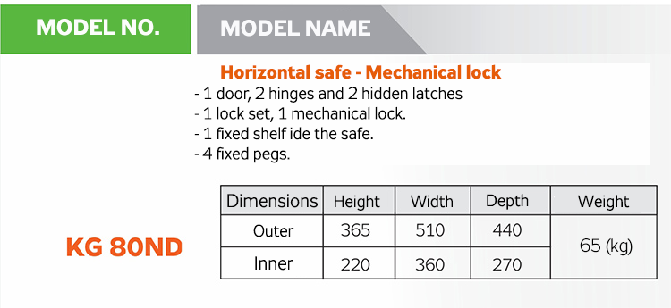 Safe with unchangeable combination lock Model KG90P